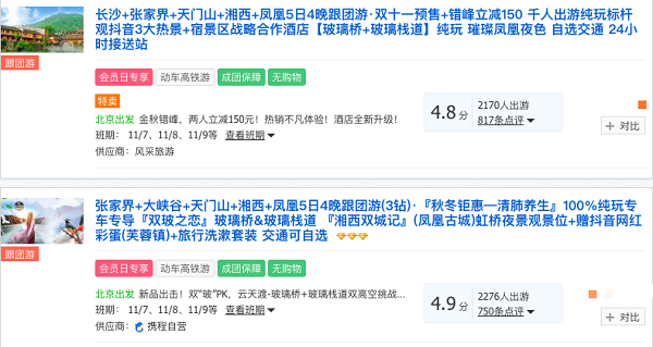 具体来看,在以“抖音”为卖点的旅游产品中,湖南张家界、海南三亚、四川藏区在数量上排名前三,其中张家界的玻璃桥和玻璃栈道热门打卡地最受用户欢迎,三亚的抖音网红酒店、无边泳池也吸引用户争相打卡,也带动张家界游客增长。其次为重庆、贵州黄果树和成都,传统知名景点在旅游产品上也做出推陈出新的改变。